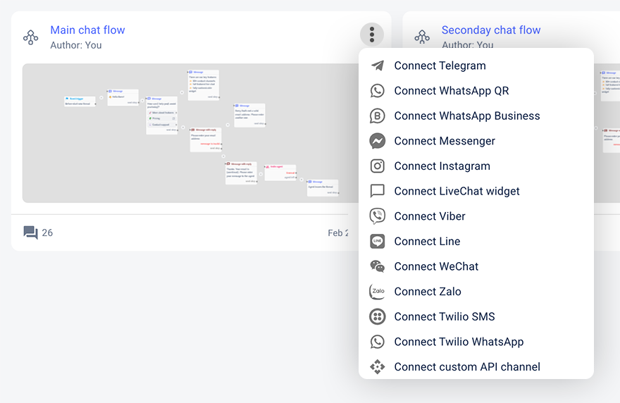 Connect your chatflows to any channel and deliver a seamless experience everywhere