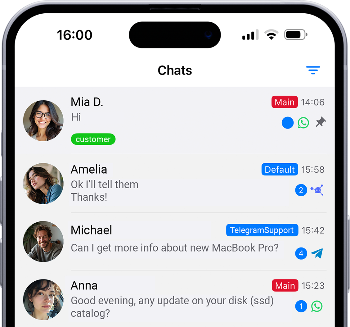The mobile app focuses on quick navigation between inbox, conversation, and action states so agents can resolve requests with fewer taps.
